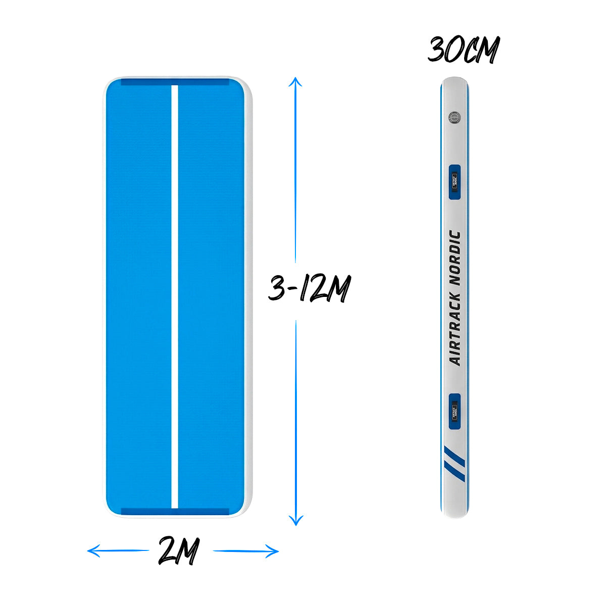 The AirTrack Nordic Gym Wide is the thickest (30cm) airtrack in our range that meets the criteria of the most demanding enthusiast. Gym Wide airtracks are ideal for clubs, gyms and professional users. Home users also enjoy the high bounces of this mattress! Gym Wide is available in four lengths: 3m, 5m, 8m and 12m. It is 2 meters wide and 30cm thick.